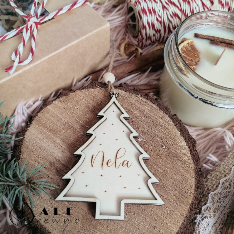 Drewniana bombka świąteczna z motywem choinki to elegancka i naturalna dekoracja na Boże Narodzenie. Doskonale sprawdzi się jako ozdoba choinki, element świątecznych aranżacji oraz drobny upominek lub prezent na święta.