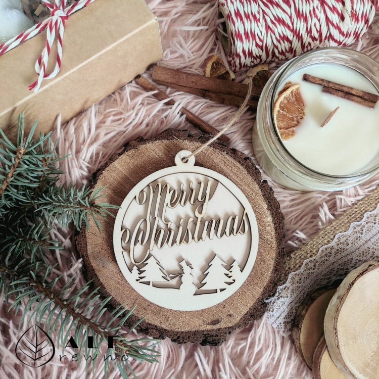 Drewniana bombka na choinkę Merry Christmas – dekoracja Bożego Narodzenia