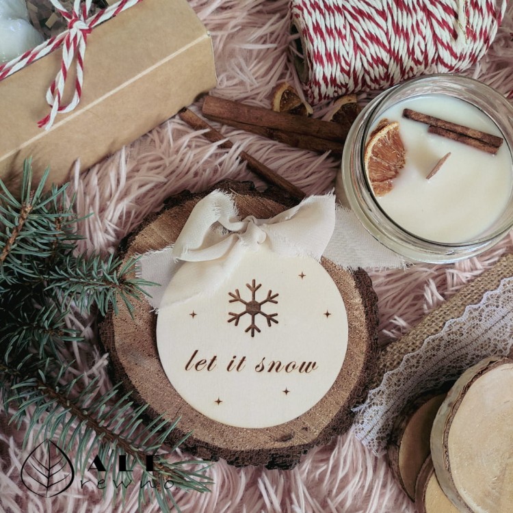 Drewniana bombka na choinkę Let It Snow – świąteczna dekoracja Bożego Narodzenia