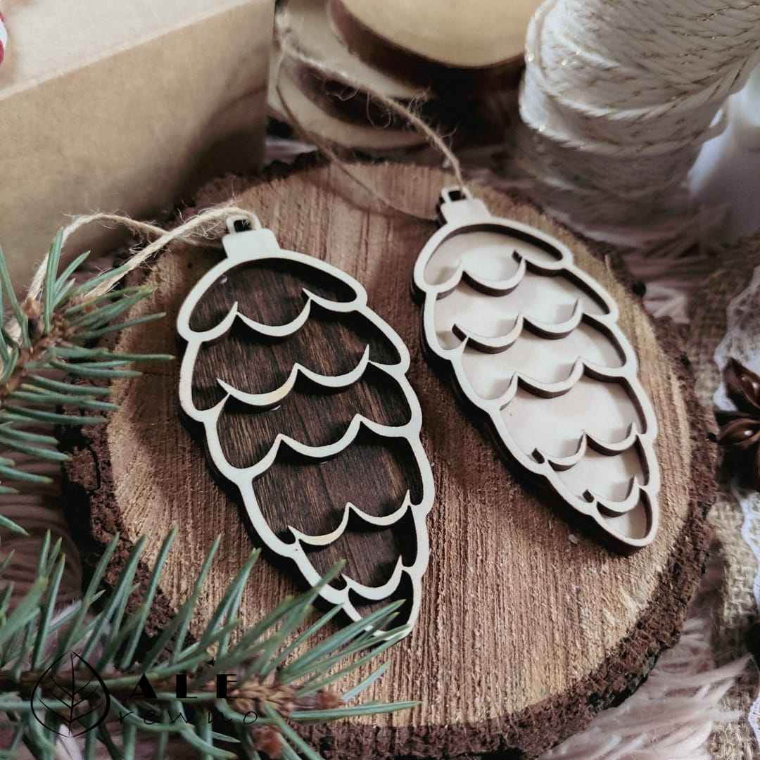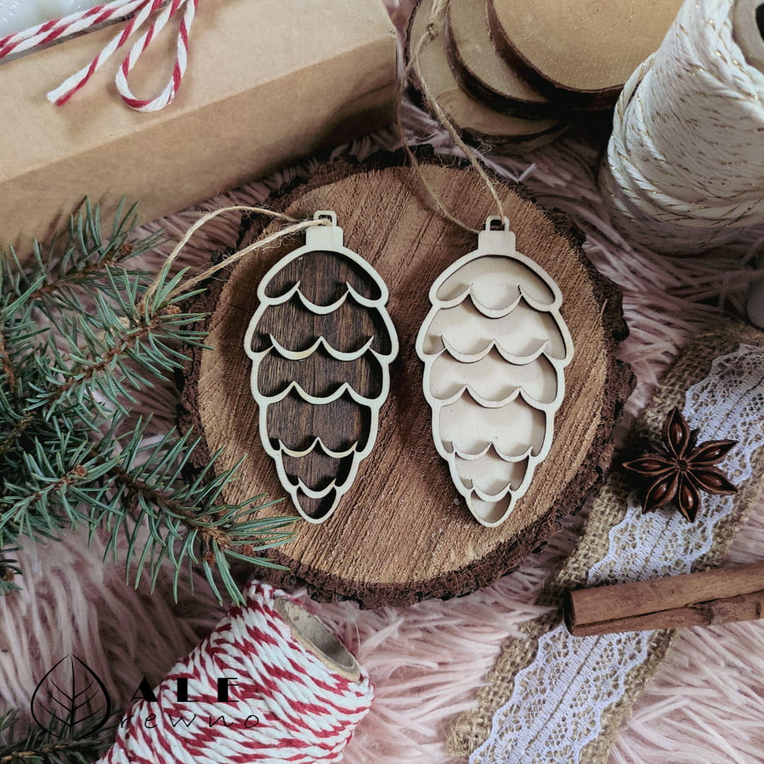 Drewniana bombka ozoba świąteczna szyszka na choinkę