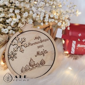 Drewniana bombka świąteczna z imieniem Moje Pierwsze Święta