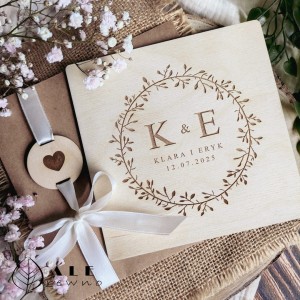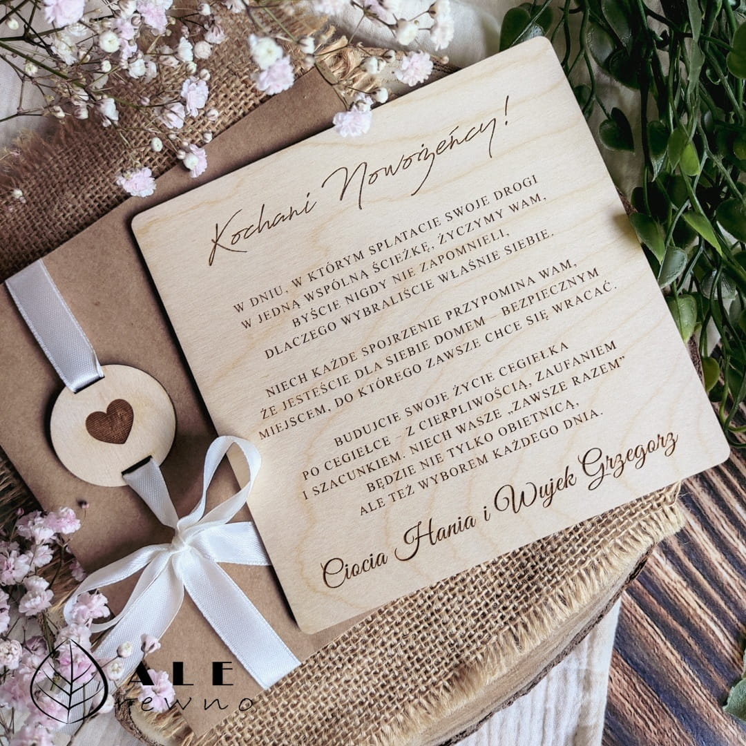 Drewniana kartka ślubna prezent dla Nowożeńców