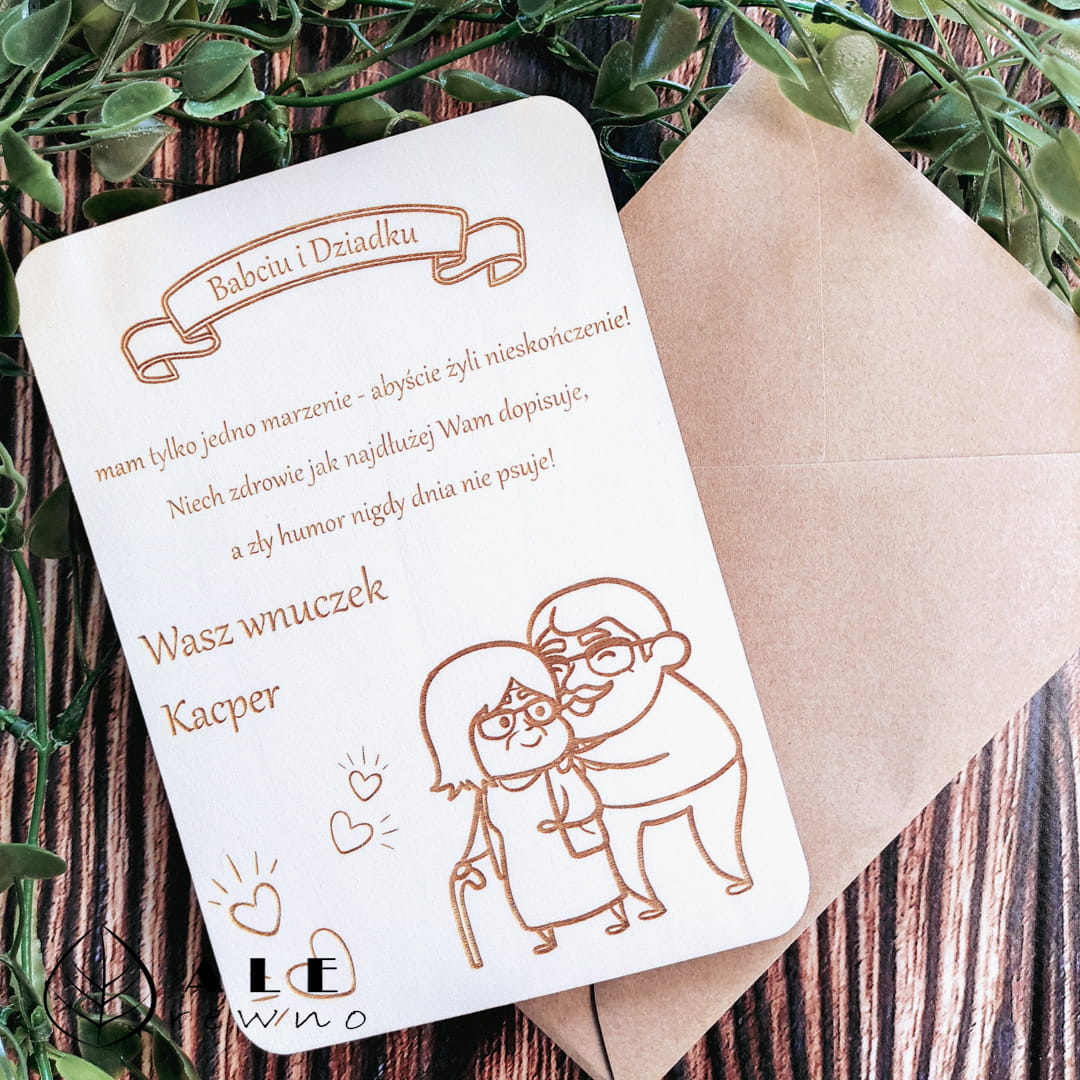 Drewniana kartka z życzeniami dla Babci i Dziadka