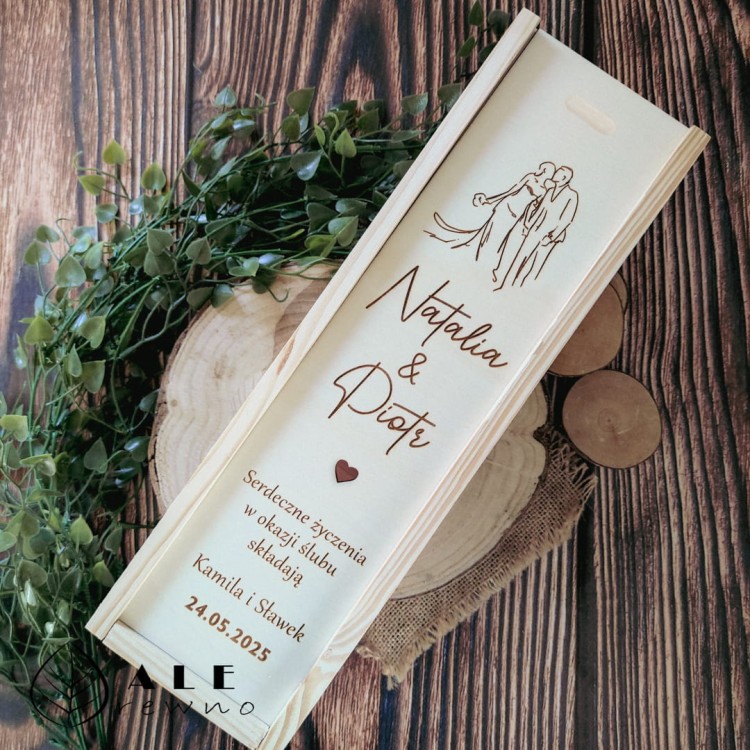 Drewniana skrzynka na alkohol dla Młodej Pary