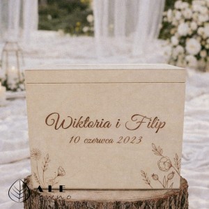 Zadbaj o każdy detal swojego ślubu. Zamów drewnianą skrzynkę na koperty z grawerem i stwórz piękną pamiątkę na całe życie.