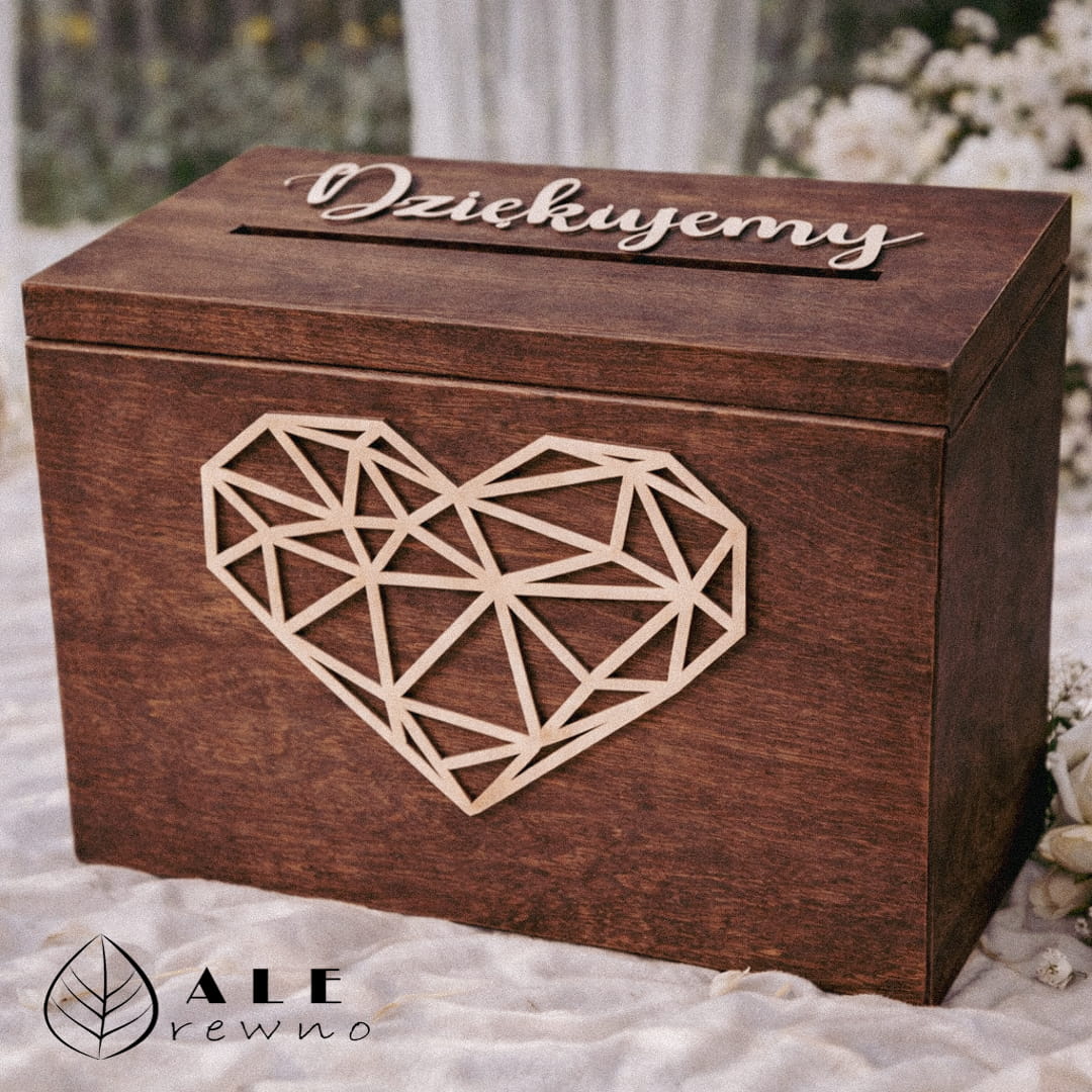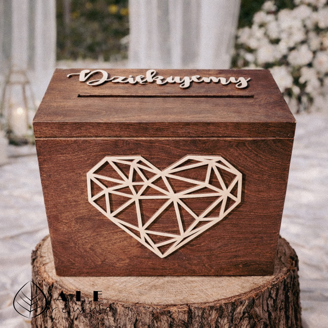 Zadbaj o każdy detal swojego ślubu. Zamów brązowe drewniane pudełko na koperty z grawerem i stwórz elegancką pamiątkę na całe życie.