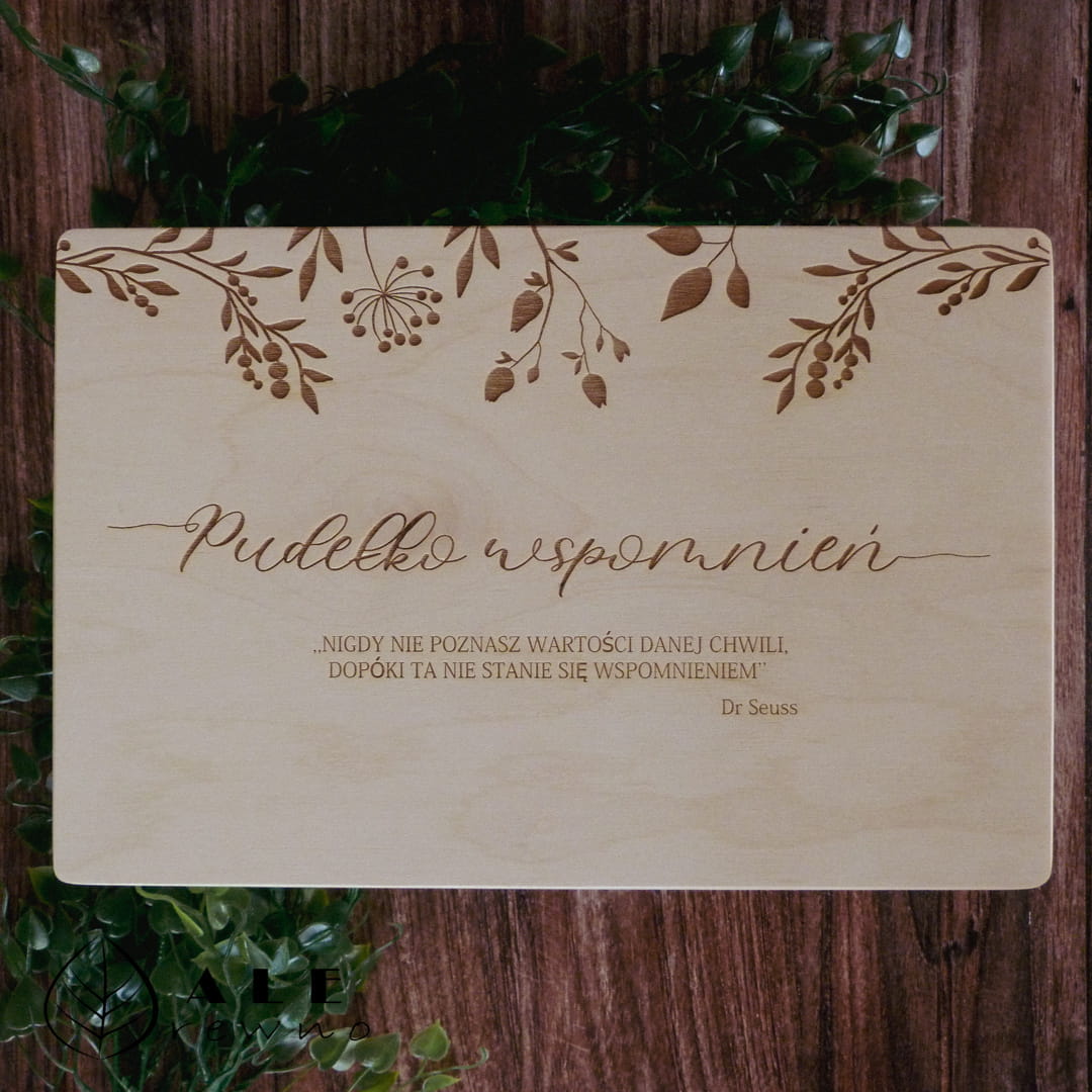 Drewniana skrzynka wspomnień z grawerem