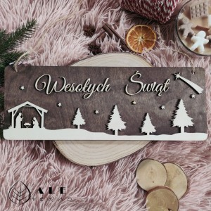 Drewniana tabliczka świąteczna Wesołych Świąt