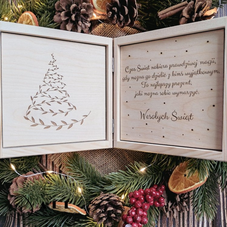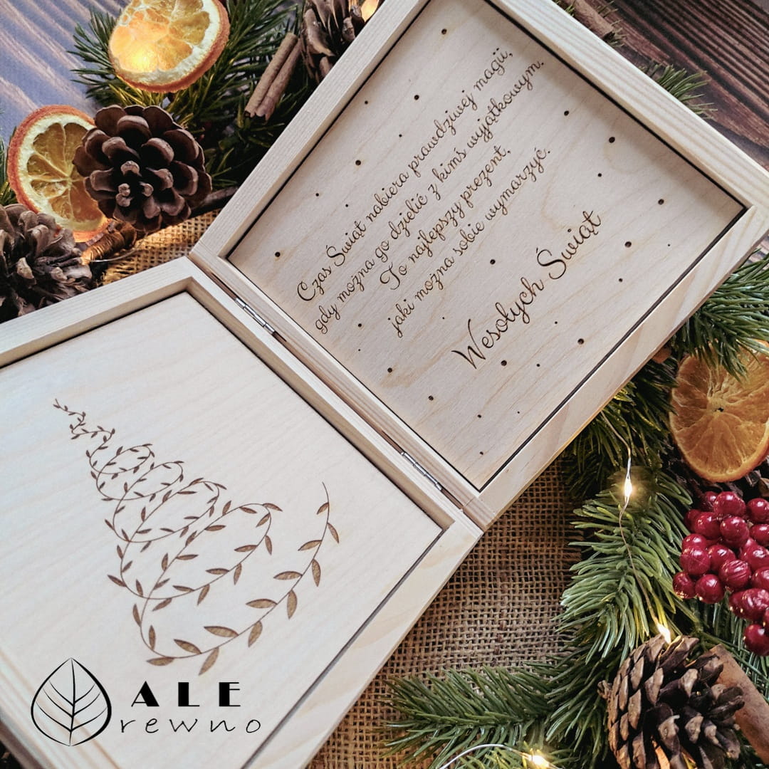 Drewniane pudełko świąteczne na prezent Wesołych Świąt