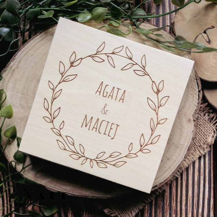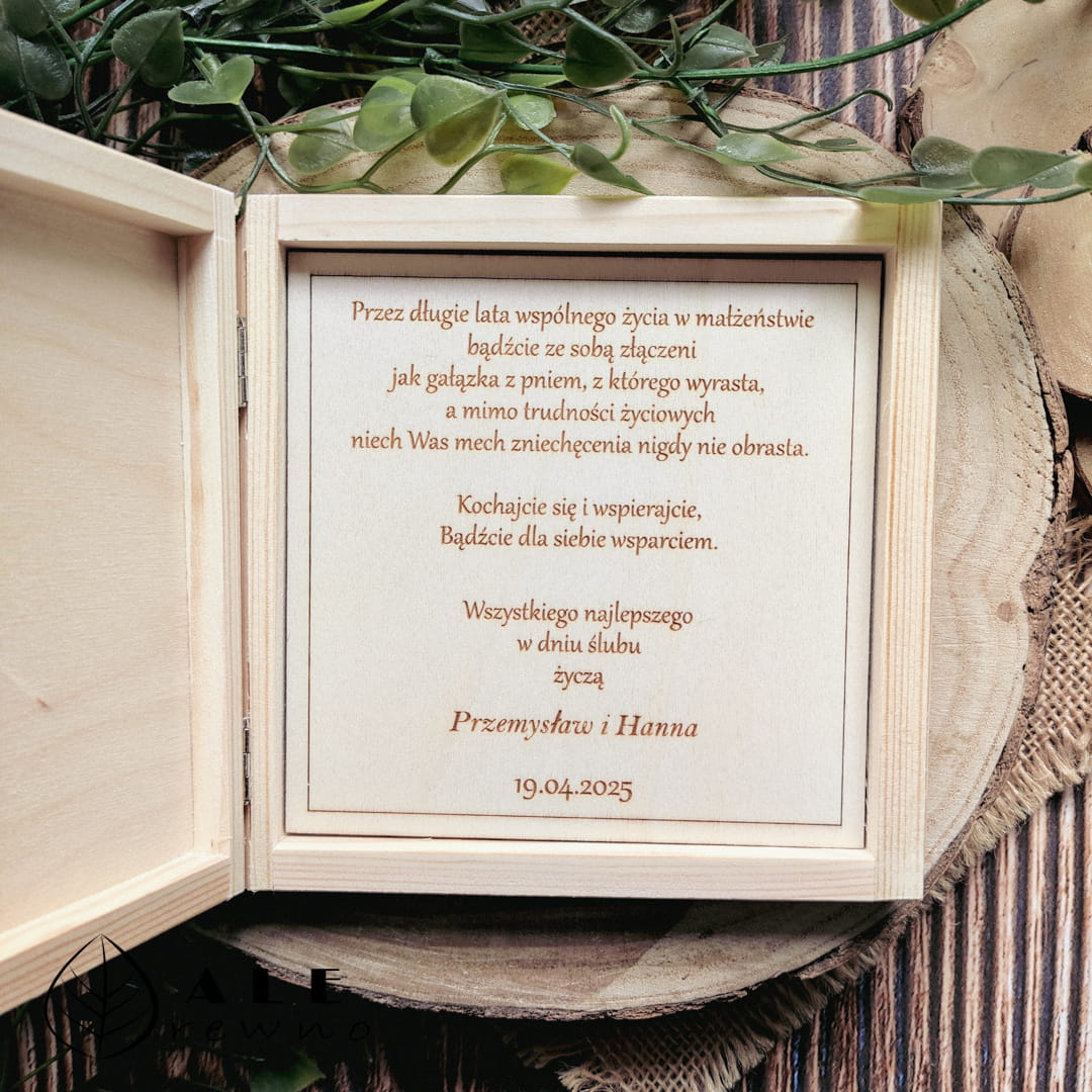 Drewniane pudełko z życzeniami dla Młodej Pary