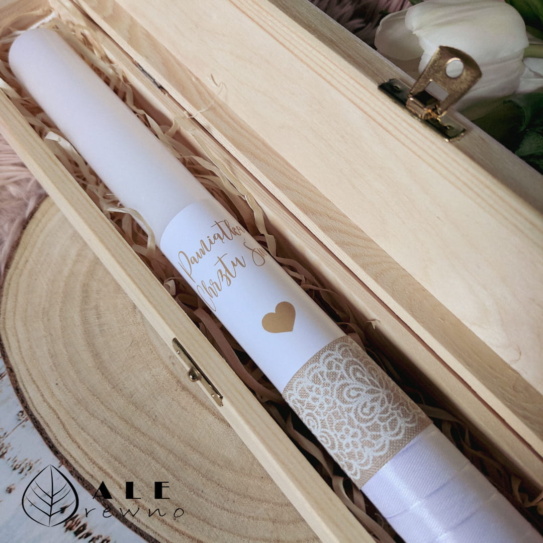 Drewniane pudełko na świecę do Chrztu – elegancka i trwała pamiątka na lata