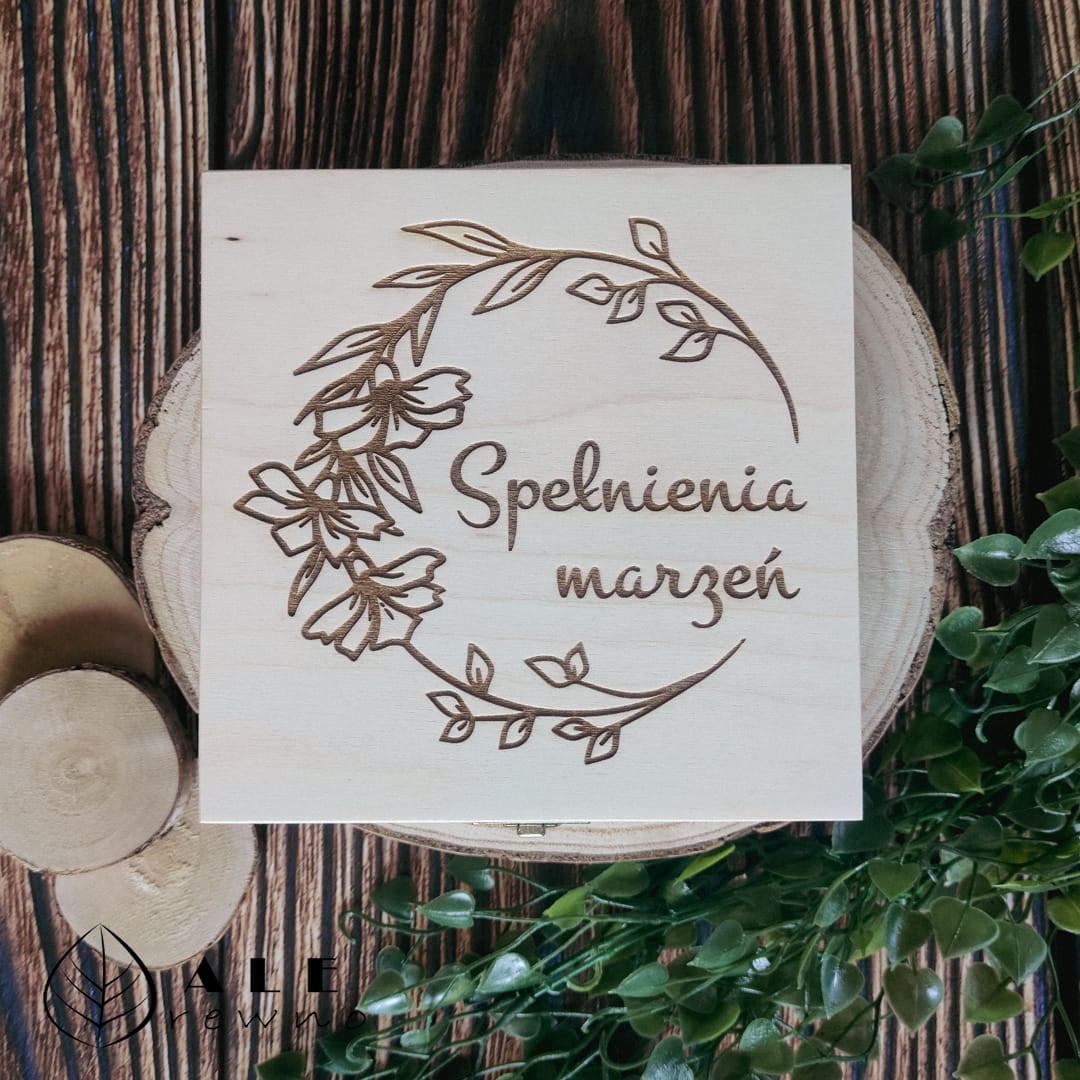 Drewniane pudełko z życzeniami urodzinowymi – elegancka i trwała alternatywa dla tradycyjnej kartki. Personalizowany grawer i unikalny design na każdą okazję.
