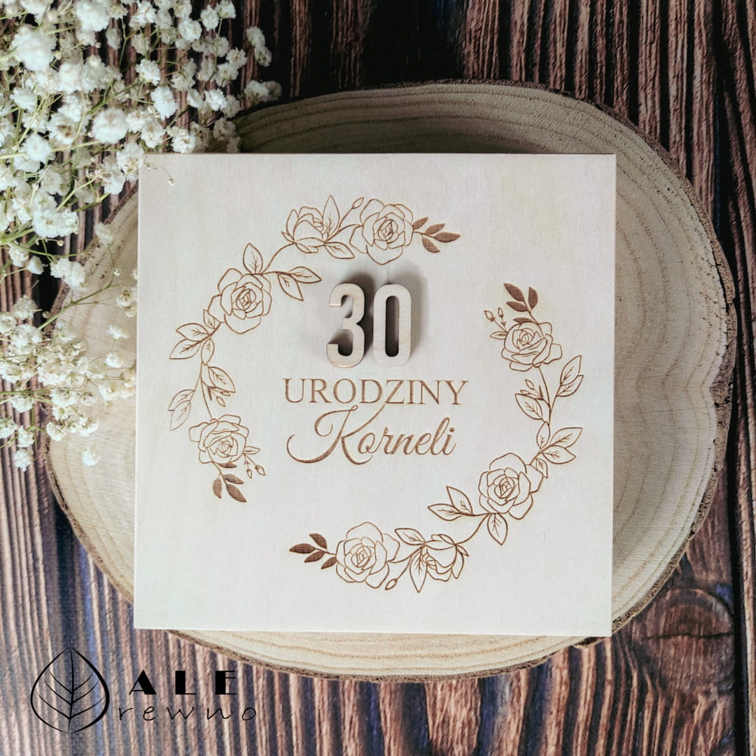 Niech tegoroczne życzenia urodzinowe zyskają formę, na jaką zasługują. Nasze drewniane pudełko to gwarancja uśmiechu i wzruszenia u obdarowanej osoby. Wpisz imię solenizanta, wybierz wiek oraz treść życzeń w zamówieniu, a my przygotujemy dla Ciebie pamiątkę, która stanie się skarbnicą najpiękniejszych wspomnień!