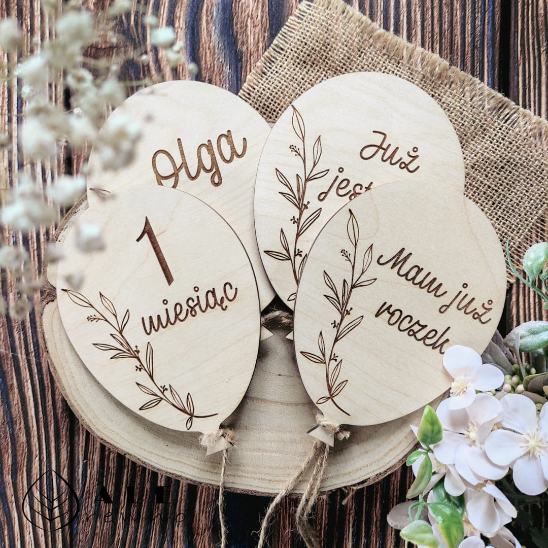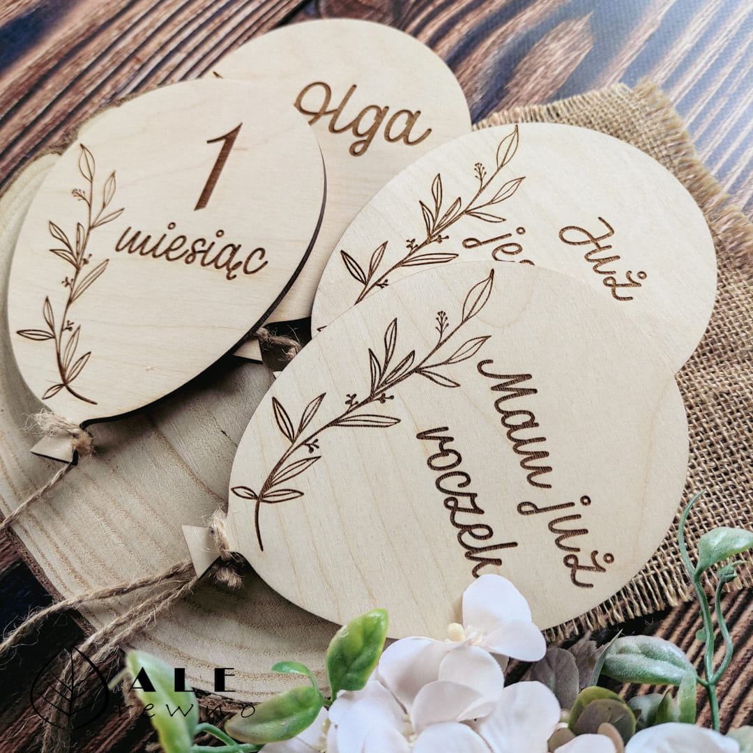Drewniane tabliczki z miesiącami do zdjęć Baloniki