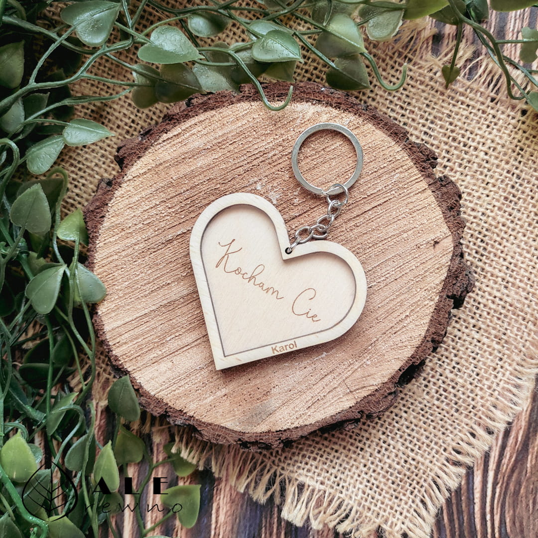 Drewniany brelok z grawerem na Walentynki serce