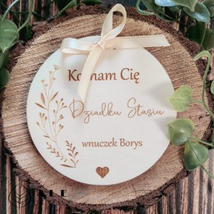 Magnes w kształcie koła to personalizowany upominek, który będzie wyjątkową pamiątką na Dzień Babci i Dziadka. Grawerowany kwiatek w środku nadaje mu subtelnego uroku, a imiona dziadków wygrawerowane na magnesie sprawiają, że jest to prezent naprawdę osobisty. Z funkcją magnesu, będzie to praktyczny dodatek, który zawisnie na lodówce.