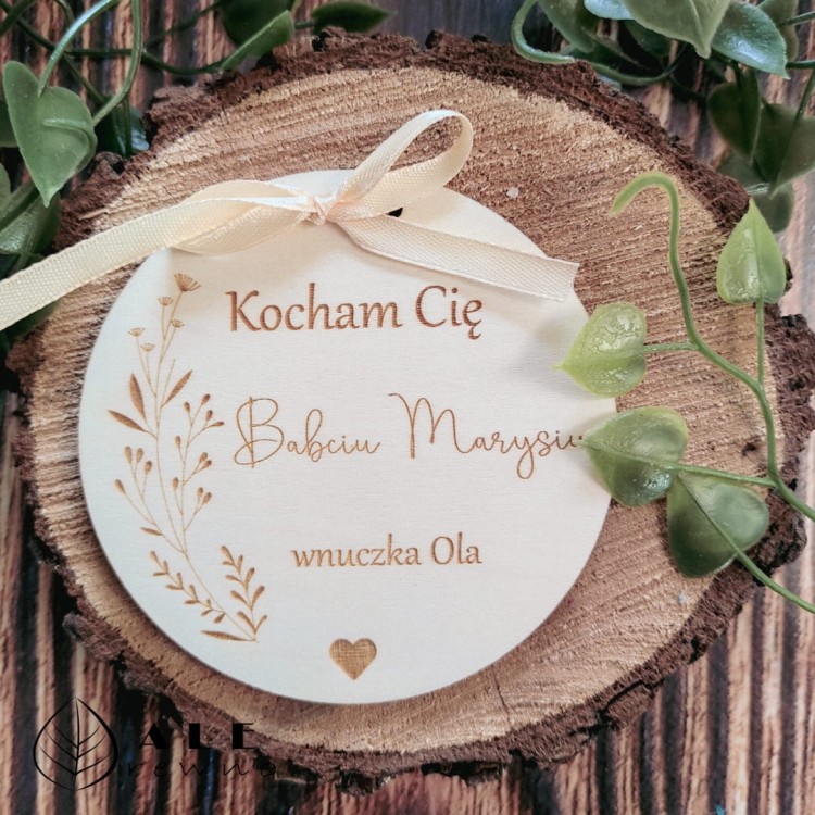 Elegancki drewniany magnes z wstążką – idealny prezent na Dzień Babci i Dziadka