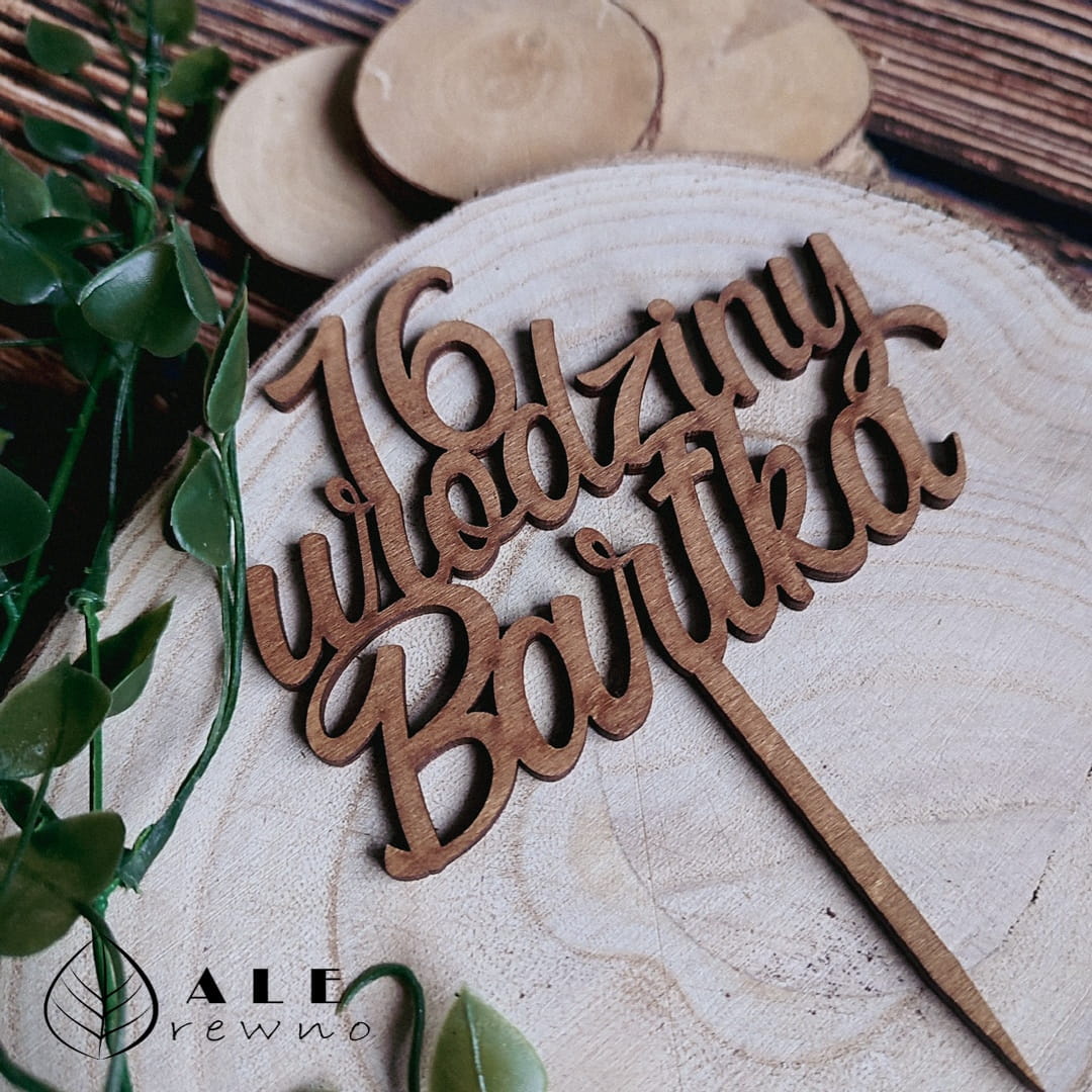 Drewniany topper urodzinowy na tort brązowy