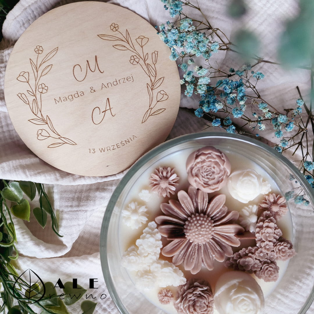 Naturalna świeca sojowa zapachowa ślubna z grawerem inicjałów