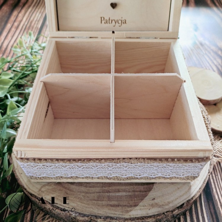 Wykonane z drewna sosnowego o wymiarach 16x16 cm, to pudełko na herbatę nie tylko wygląda wyjątkowo, ale jest także solidne i trwałe. Jego naturalny wygląd i wysoka jakość materiałów sprawiają, że stanie się ono piękną pamiątką, która będzie cieszyć oczy przez wiele lat. Nawet po wypiciu ostatniej filiżanki herbaty, pudełko nadal będzie pełnić rolę dekoracyjnego elementu, przypominając o ciepłych chwilach spędzonych przy herbacie. Takie pudełko z pewnością wywoła uśmiech na twarzy każdego obdarowanego, szczególnie Dziadków, którzy z radością będą je wykorzystywać każdego dnia.