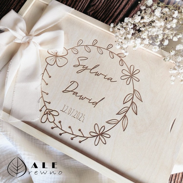 Pudełko ślubne na zdjęcia dla Młodej Pary kwiatki