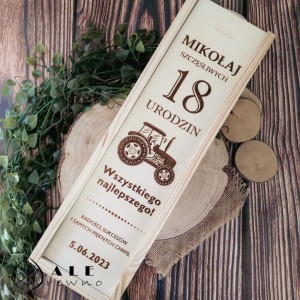 Oryginalna drewniana skrzynka na alkohol z motywem traktora