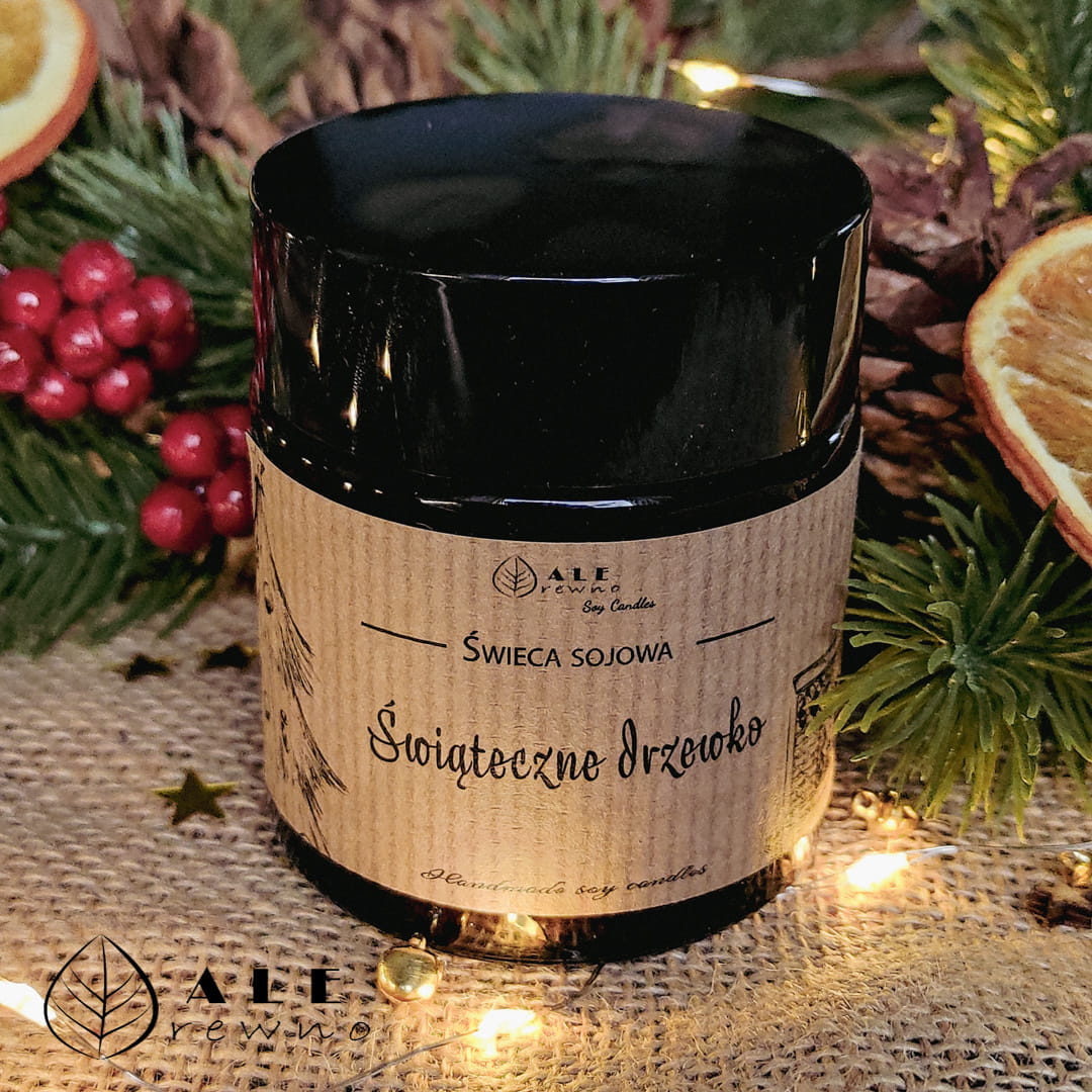 Świeca zapachowa sojowa o aromacie świątecznego drzewka