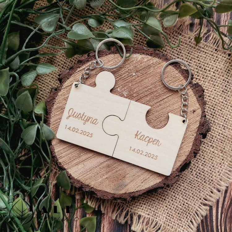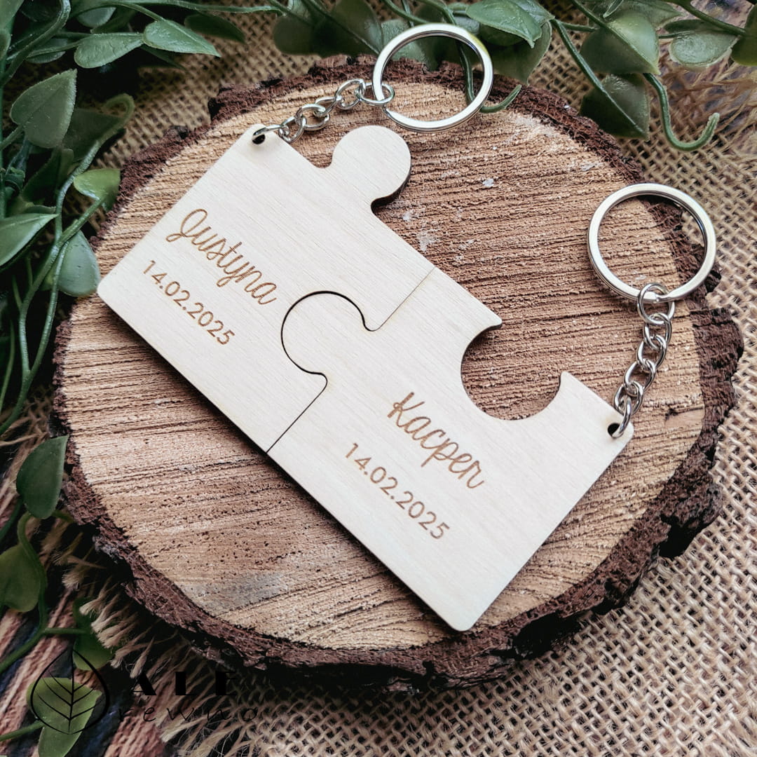 Szukasz czegoś wyjątkowego na Dzień Zakochanych, co pokaże, jak idealnie do siebie pasujecie? Drewniany brelok w kształcie dwóch puzzli to romantyczny i symboliczny upominek, który zachwyci Twoją drugą połówkę!